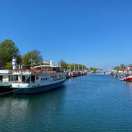 Die 1-Zimmer-FeWo an der Warnow unweit der Ostsee Rostock liegt in circa 3 km Entfernung vom Leuchtturm Warnemünde und bietet WLAN für Geschäftsreisende und Urlauber. Die Gäste des 30 m² großen Apartments genießen den Zugang zu einer Terrasse mit einer Küchenzeile.